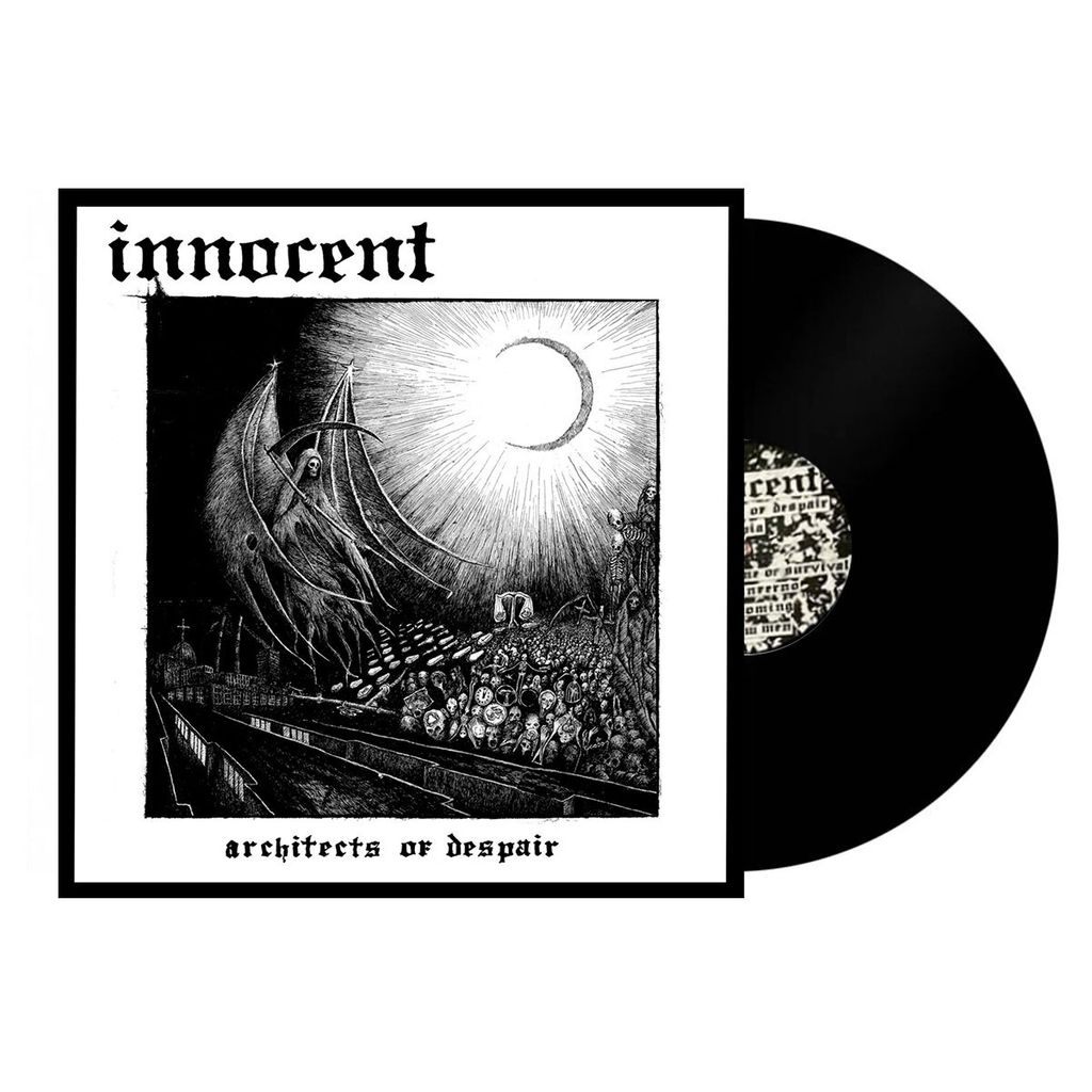 Side Two Records Architects of Despair by Innocent Black Vinyl.11 tracks of noise damaged D-beat. Follow up to earlier demos this LP was originally recorded in 2018 and now finally seeing the light of day. Huge poster insert w/ art by Willow (Flower).