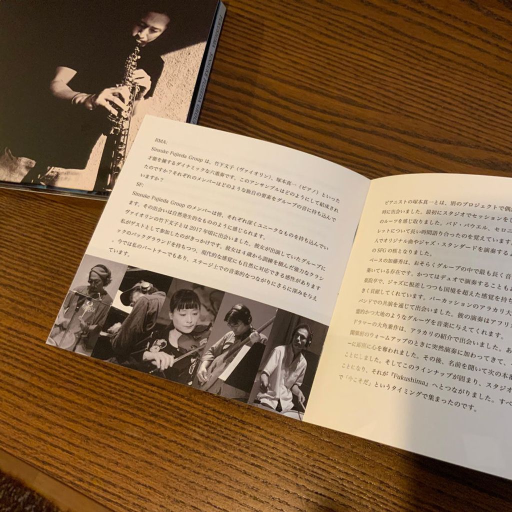 ● Comes with a 20-page booklet—part audio, part document. This release includes a full Japanese translation of the extensive feature interview with Sinsuke Fujieda originally published in WE JAZZ MAGAZINE Issue 16 / Fall 2025 (Finland). The booklet also includes a wealth of black-and-white photos documenting the studio session, offering a visual and philosophical gateway into the world of Fukushima.