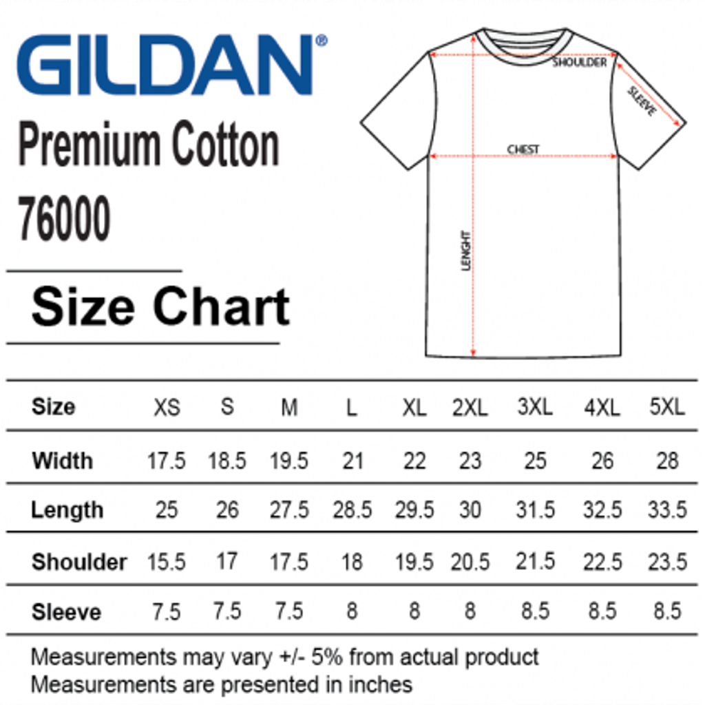 Printed on White T-Shirt (Gildan Premiun Cotton) - PLEASE CHECK SIZING CHART