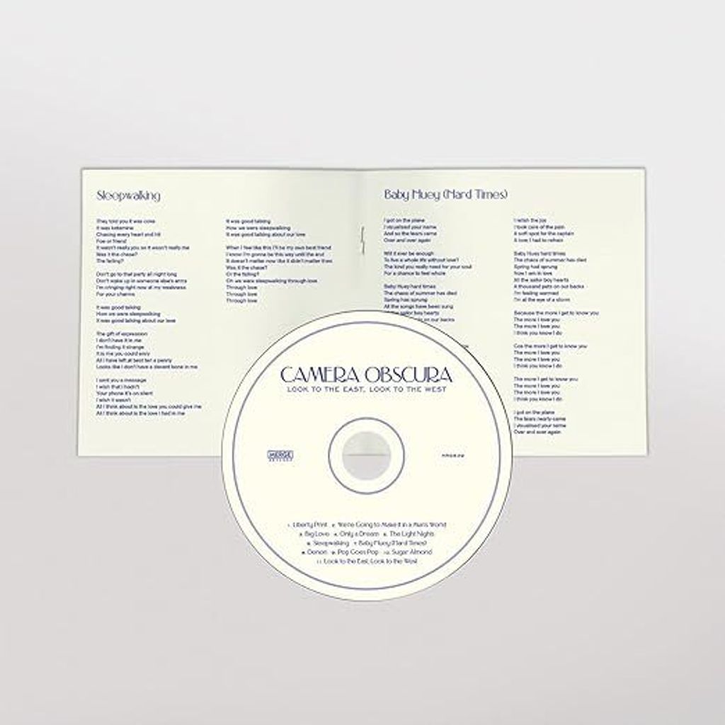 Look to the East, Look to the West is Camera Obscura at their best and most evocative. Reuniting with producer Jari Haapalainen (Let's Get Out of This Country, My Maudlin Career), Camera Obscura have crafted an album that simultaneously recalls why longtime fans have ferociously loved them for decades, while also being their most sophisticated effort to date. Lead single Big Love relishes in the space between country rock and prog, a pining break-up anthem featuring the soaring pedal steel of Tim Davidson. Were Going to Make It in a Mans World was co-written with Maciocia for filmmaker Margaret Salmons 2021 film Icarus (After Amelia). (Salmon, in turn, shot Look to the East, Look to the Wests cover photography featuring Fiona Morrison, who was on the cover of Camera Obscura's debut, Biggest Bluest Hi-Fi.). Ironic and sincere, the two navigate the reality of being women in the music industry, somehow floating over Davidsons pedal steel and Maciocias keys.