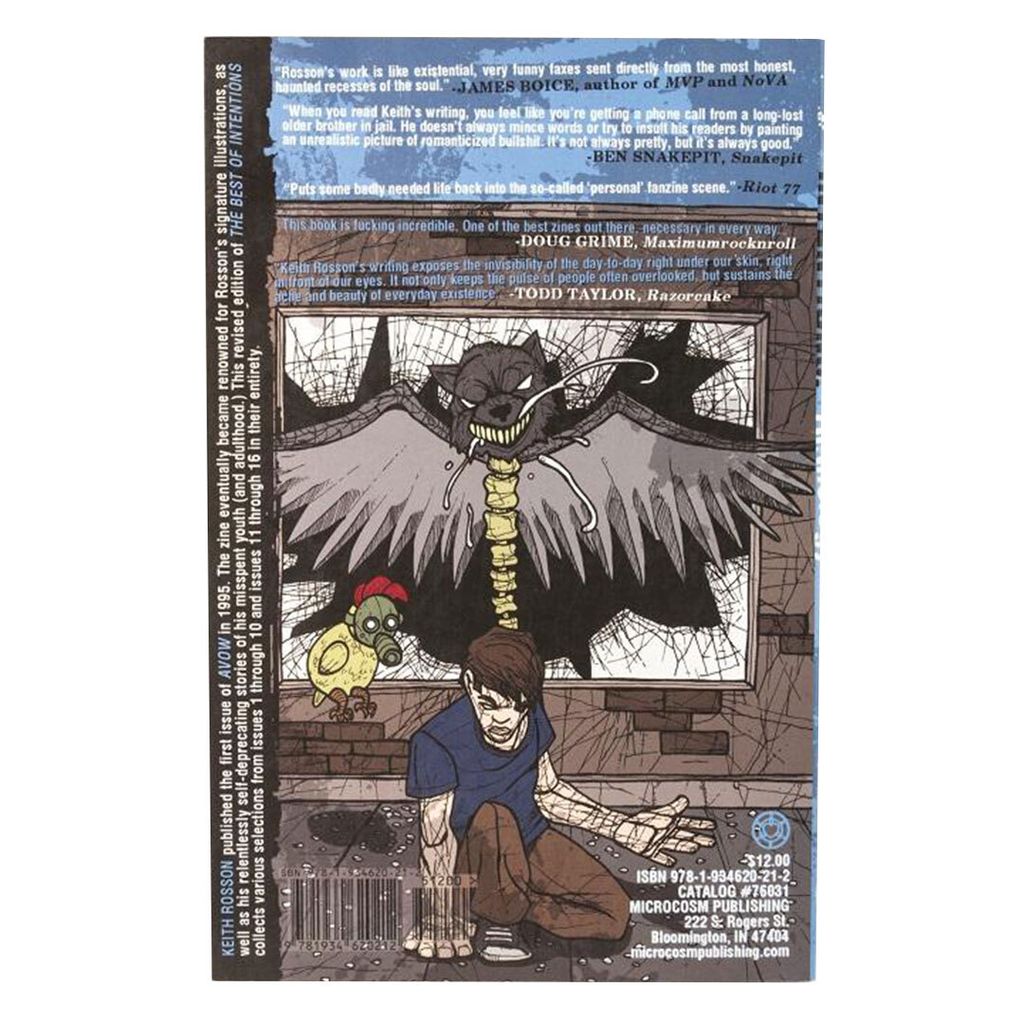 Now in its second edition, The Best of Intentions is a big ol' whopping collection of material from the long-running Avow zine. Issues 11-16 and selections from the first ten issues are presented here as a one-stop-shop of a book. Keith Rosson's stories and art show him neck-deep in a hard-living, knockaround life. This is existentialism done punk rock style with a good sense of humor to lighten up all the bloodletting. Keith has done artwork for Submission Hold, Against Me!, and HearttaCk (among many others) and the illustrations here do not disappoint. If you're into Burn Collector and Cometbus this is essential per-zine action!