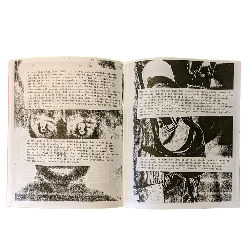 Possibly one of the best, most insightful zines ever written, Rocket Queen is author Janet's tale of working as a dancer in Asheville, NC. Janet examines all the reasons why someone would want to dance for money, and her own motivations for doing so, including issues of freedom, power, and attention. She also deconstructs the different types of customers that come to clubs, like the sugar daddy that wants to take care of you, or the savior that wants to save you from a life of stripping. It's all told in a matter of fact style that doesn't demonize stripping, and doesn't romanticize it either. Rocket Queen has the familiar tone of a friend telling you about their job; what they like, and what they don't. And the whole thing is just so intelligent, honest, and witty. It's highly recommended for anyone who's danced or thought about dancing, or even those who have friends that dance. Rocket Queen will change the way you think about sex work.