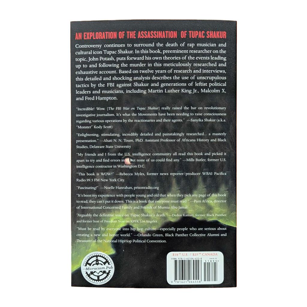 Since the first day after the tragedy was announced, controversy has surrounded the death of rap and cultural icon Tupac Shakur. In this work, preeminent researcher on the topic, John Potash, puts forward his own theories of the events leading up to and following the murder in this meticulously researched and exhaustive account of the story. Never before has there been such a detailed and shocking analysis of the untimely death of one of the greatest musicians of the modern era. The FBI War on Tupac Shakur contains a wealth of names, dates, and events detailing the use of unscrupulous tactics by the Federal Bureau of Investigation against a generation of leftist political leaders and musicians. Based on twelve years of research and including extensive footnotes, sources include over 100 interviews, FOIA-released CIA and FBI documents, court transcripts, and mainstream media outlets.