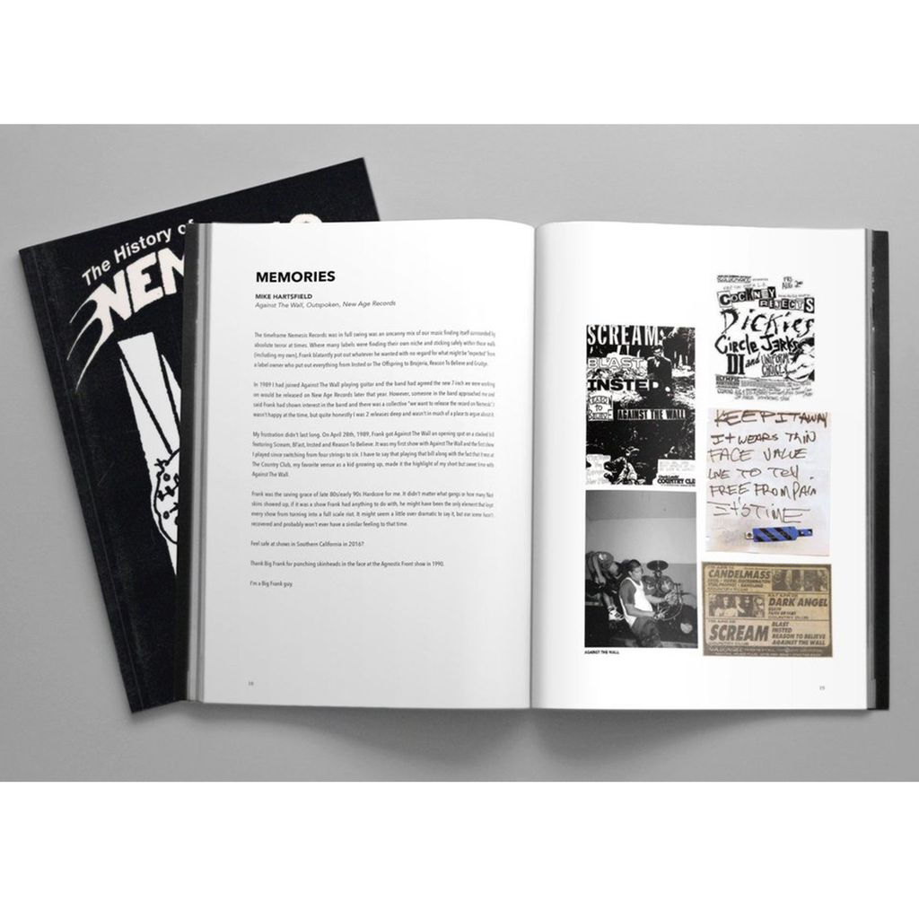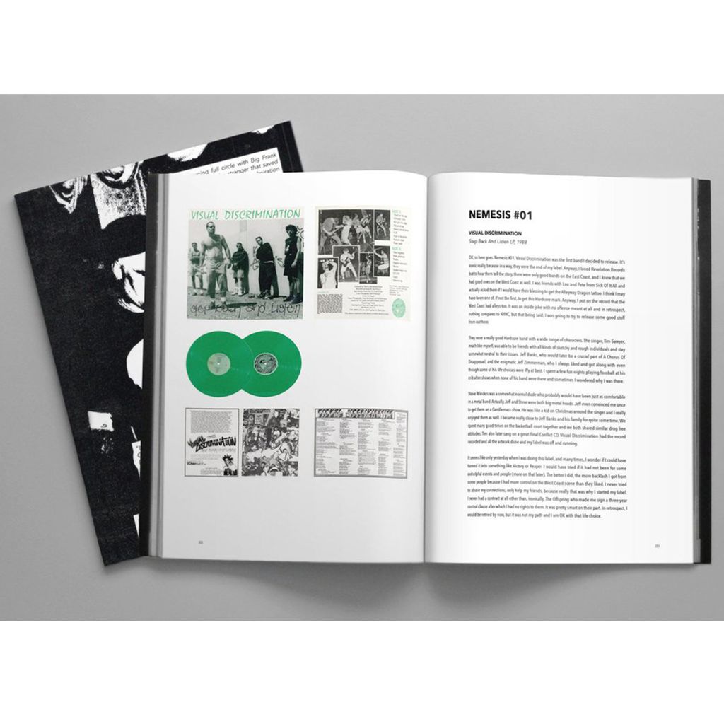 200+ page perfect bound full color book with complete discography, never before seen band photos, essays, insight and memoirs from friends and select Nemesis Records alumni including; Dan O'Mahoney (No For An Answer), Mike Hartsfield (Outspoken), Issac Golub (A Chorus Of Disapproval), Andrew Kline (Strife), Ron Martinez (Final Conflict), Jon Bunch (Sense Field), Dave Franklin (Vision)... and more!