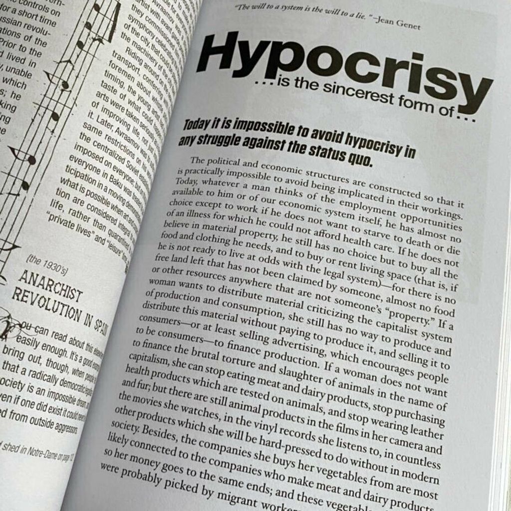 Topics range from anarchy to hierarchy, work to sex, alienation to liberation and technology, but every page burns with a passion for a truer, freer life. The books' vehement insistence that living is more important than art carries the argument beyond the typical debate. When you make it to the end, the personal testimonials about not working and the closing art pieces become an aria of voices urging you to close the book, go out, and live. Glorious, even for the most cynical reader. What more can we ask from a book?